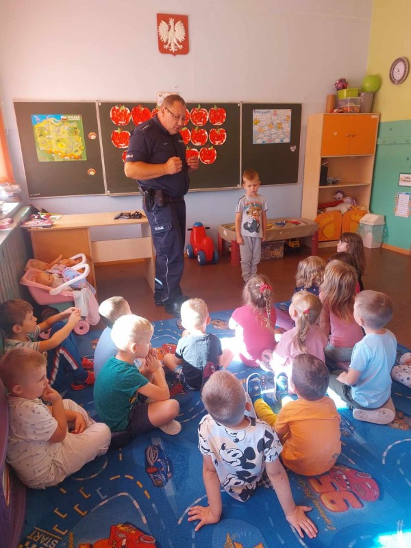 Spotkanie dzieci w Starej Ruskołęce z dzielnicowym.