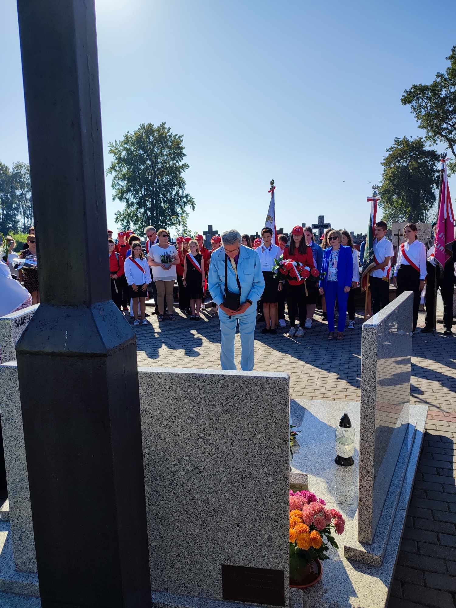 Uroczystość rozpoczęto złożeniem wieńców oraz zapaleniem zniczy przy symbolicznej mogile Sybiraków Ziemi Ostrowskiej na cmentarzu parafialnym.