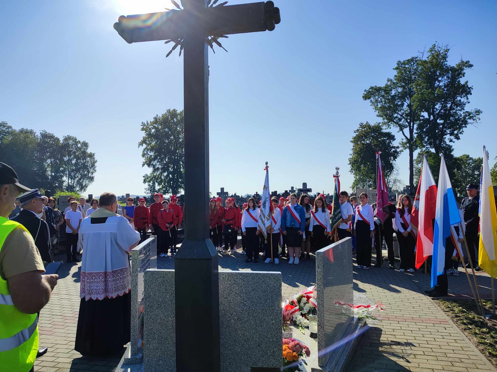 Uroczystość rozpoczęto złożeniem wieńców oraz zapaleniem zniczy przy symbolicznej mogile Sybiraków Ziemi Ostrowskiej na cmentarzu parafialnym.