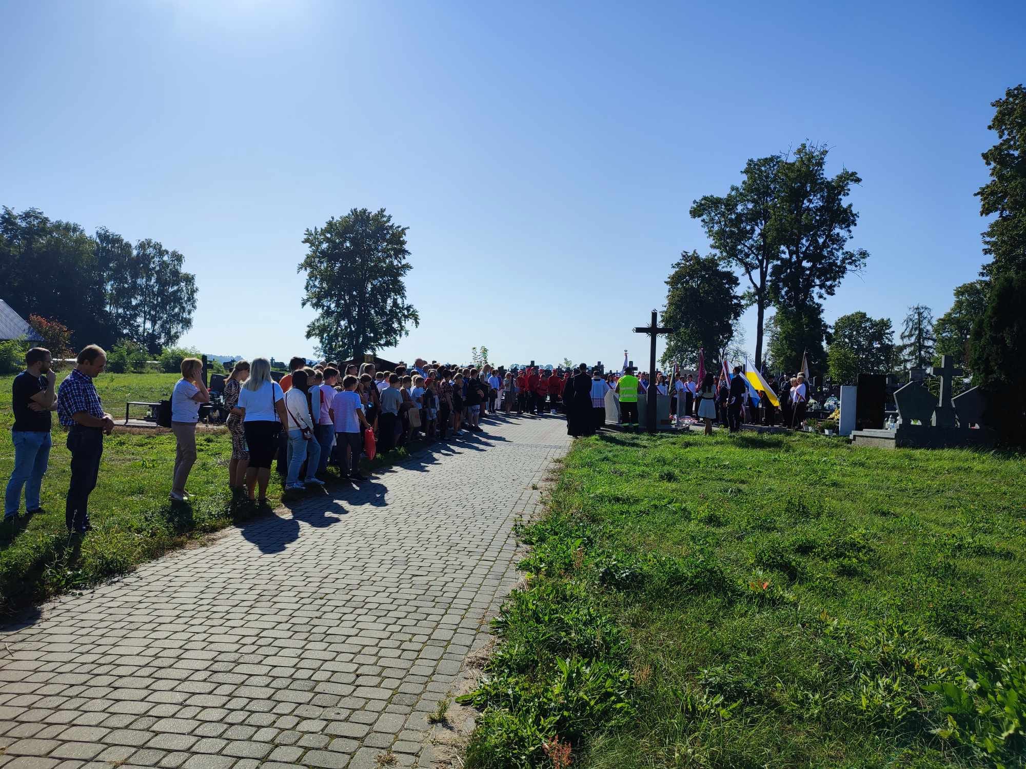 Uroczystość rozpoczęto złożeniem wieńców oraz zapaleniem zniczy przy symbolicznej mogile Sybiraków Ziemi Ostrowskiej na cmentarzu parafialnym.
