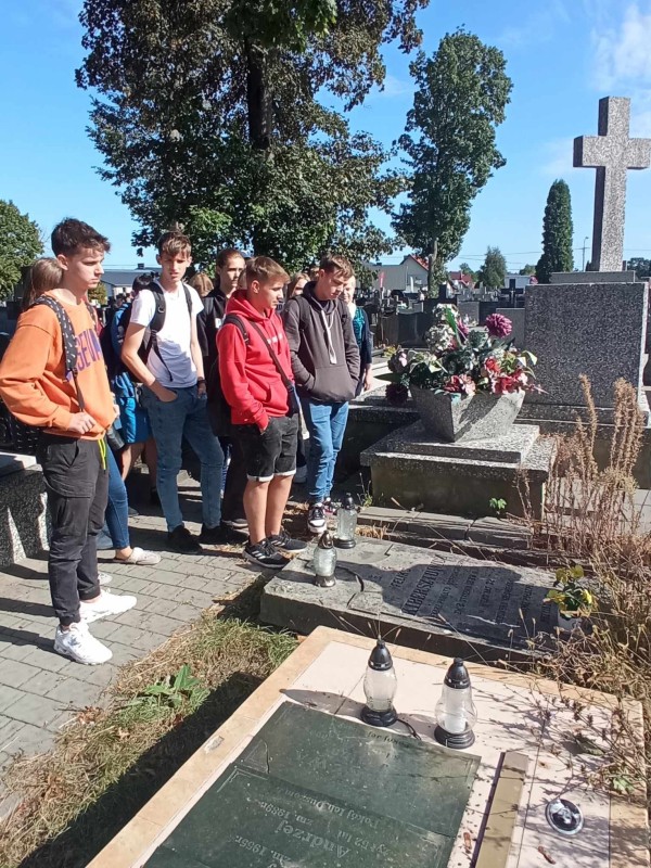 Uczniowie "Rubinka" poznają historię miasta podczas spacerów z pasjonatem lokalnych ciekawostek Andrzejem Mierzwińskim.