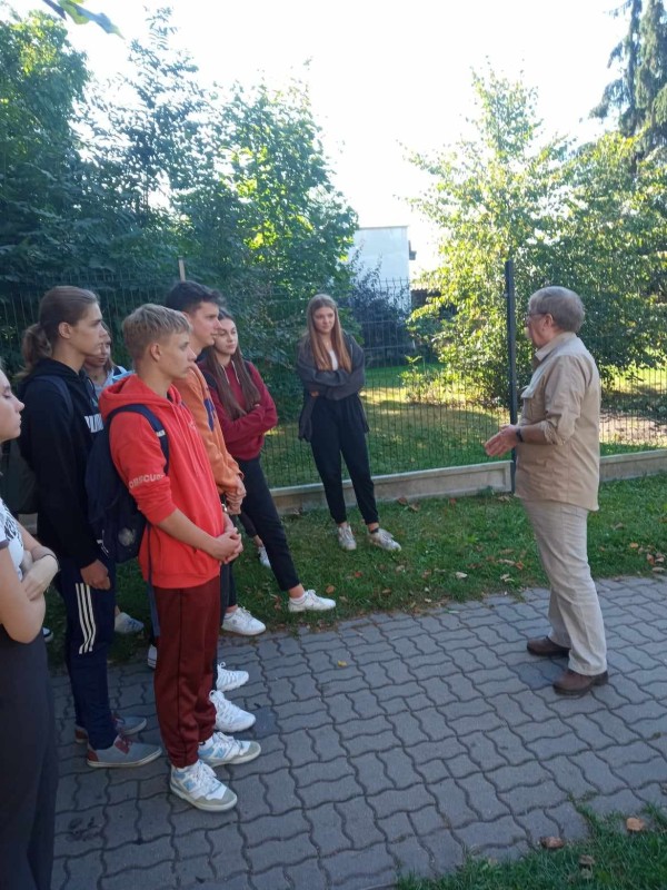 Uczniowie "Rubinka" poznają historię miasta podczas spacerów z pasjonatem lokalnych ciekawostek Andrzejem Mierzwińskim.