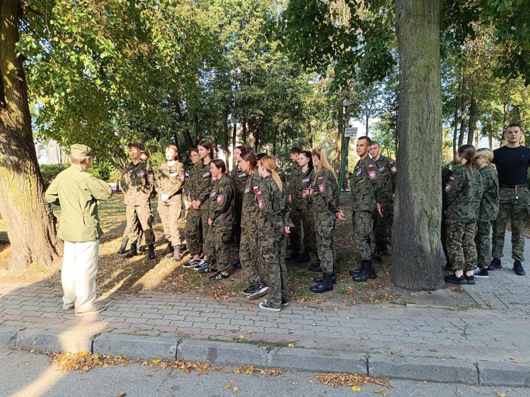 Uczniowie "Rubinka" poznają historię miasta podczas spacerów z pasjonatem lokalnych ciekawostek Andrzejem Mierzwińskim.