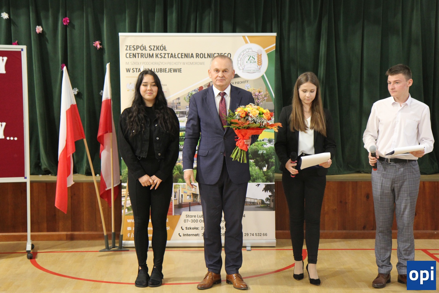 Po uroczystej akademii, dokonano odsłonięcia rzeźby z logotypem szkoły.