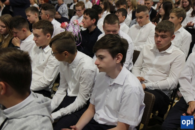 Po uroczystej akademii, dokonano odsłonięcia rzeźby z logotypem szkoły.
