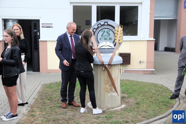 Po uroczystej akademii, dokonano odsłonięcia rzeźby z logotypem szkoły.