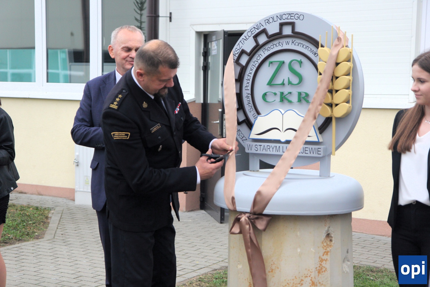 Po uroczystej akademii, dokonano odsłonięcia rzeźby z logotypem szkoły.