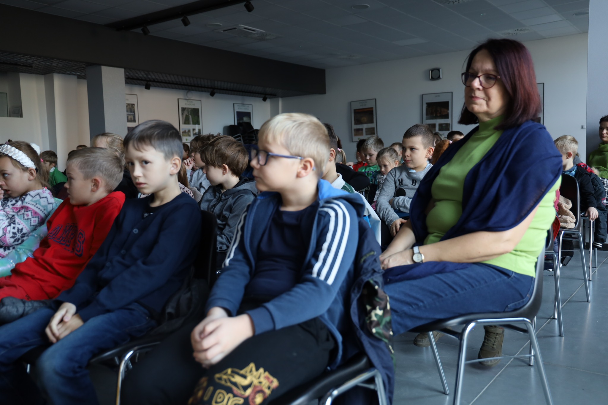 Uczniowie szkół podstawowych podczas audycji pt. "Filmowo bajecznej jesieni".