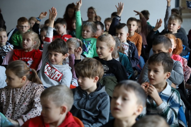 Uczniowie szkół podstawowych podczas audycji pt. "Filmowo bajecznej jesieni".