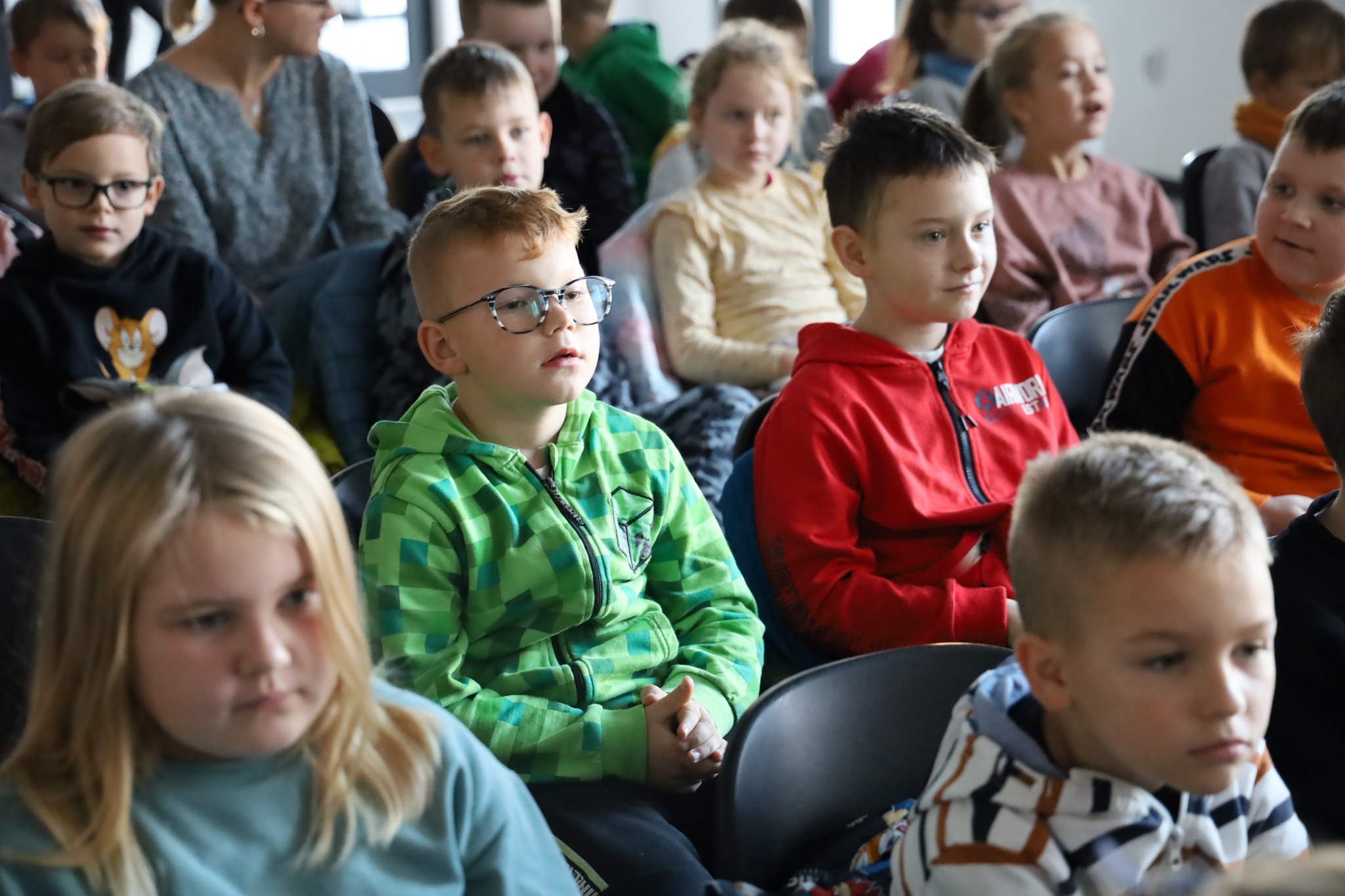 Uczniowie szkół podstawowych podczas audycji pt. "Filmowo bajecznej jesieni".
