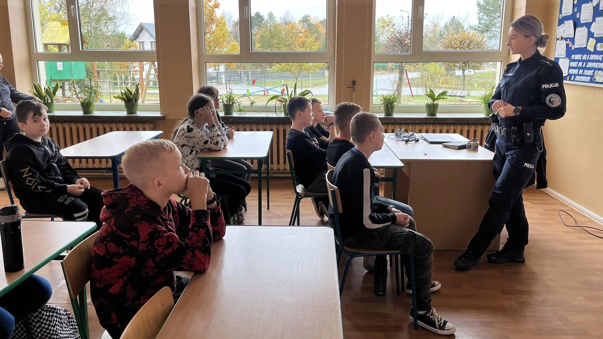 Mł. asp. Emilia Podbielska spotkała się z uczniami Niepublicznej Szkoły Podstawowej im. rtm. Witolda Pileckiego w Kozikach, z klas I, II i IV-VIII.