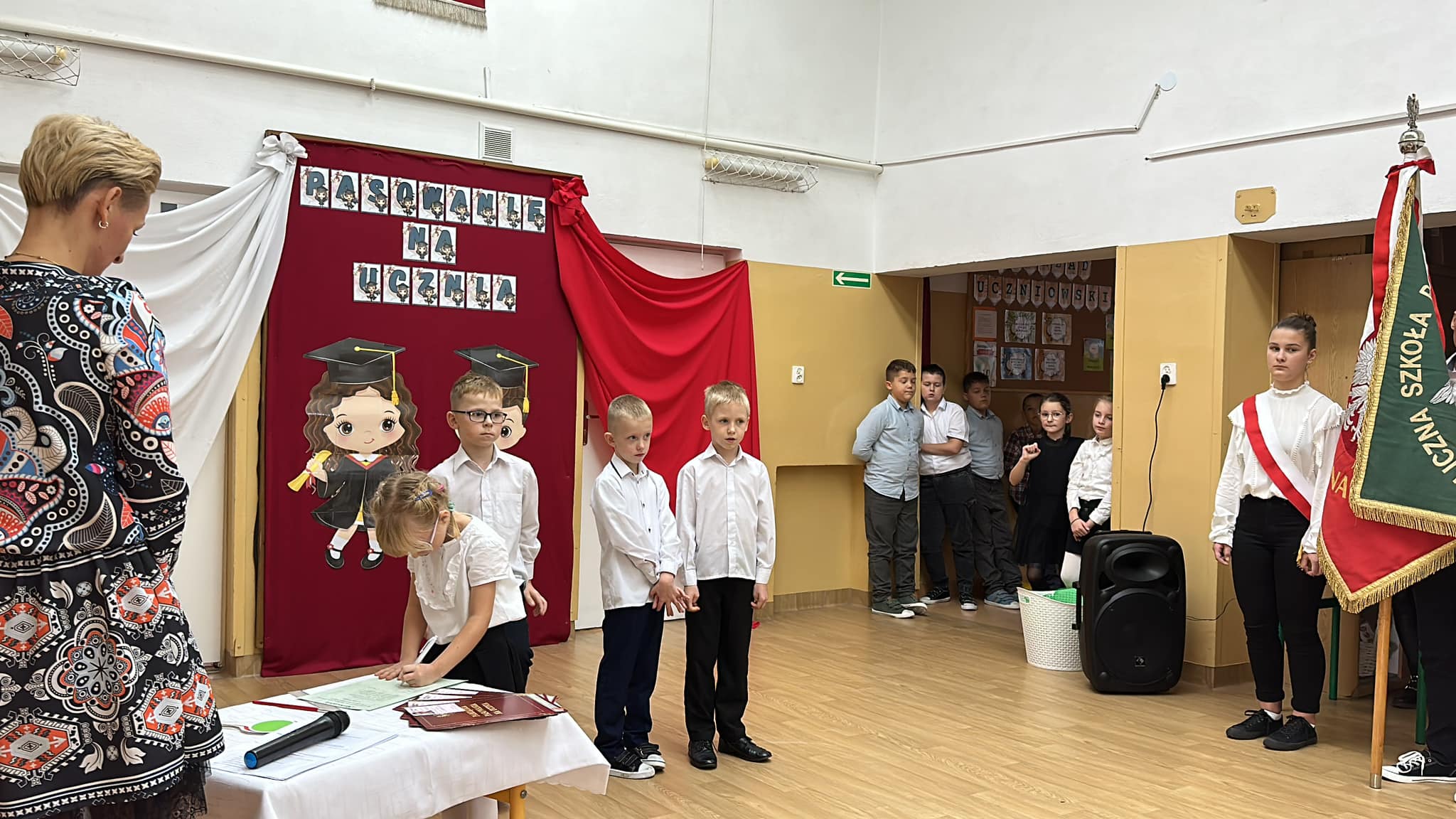 Dzieci złożyły przysięgę na sztandar szkoły i uczestniczyły w ceremonii pasowania ołówkiem przez dyrektorkę placówki.