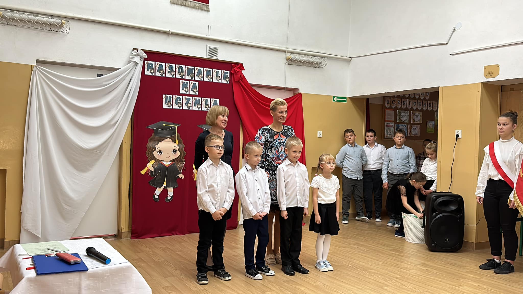 Dzieci złożyły przysięgę na sztandar szkoły i uczestniczyły w ceremonii pasowania ołówkiem przez dyrektorkę placówki.