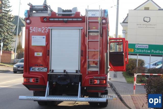 System sygnalizacji pożaru włączył się dzisiaj w Banku Pekao SA w Ostrowi Mazowieckiej (09.11.2023) - Zdjęcie 1/12