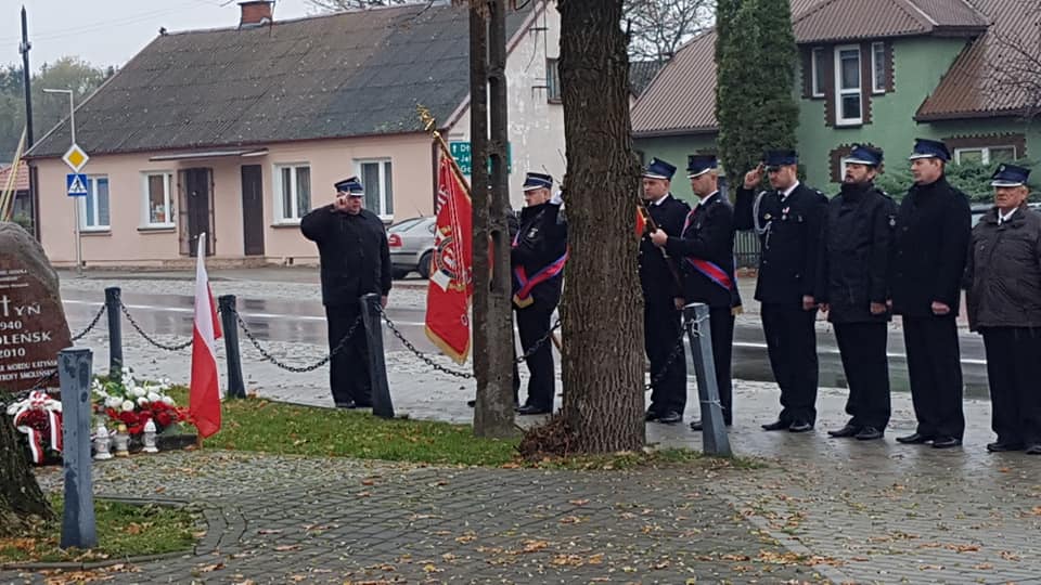 Symboliczne złożenie wieńców i zapalenie zniczy przed obeliskiem przez delegacje z gminy Wąsewo.