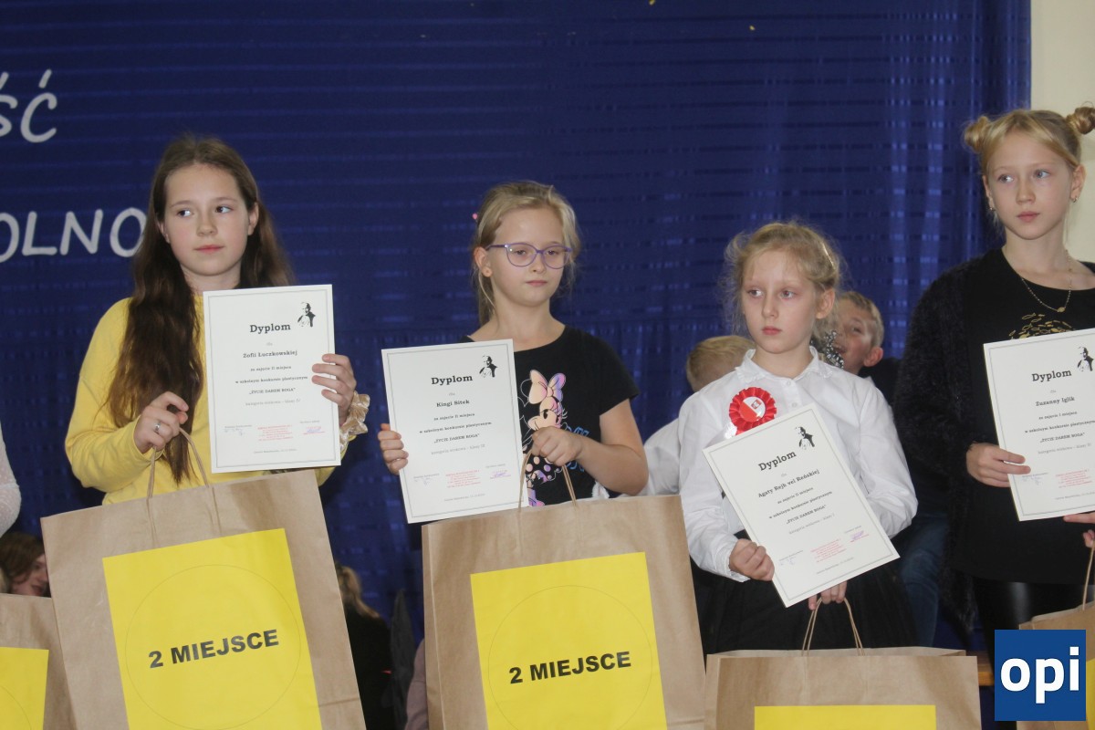 Podczas akademii zostali nagrodzeni laureaci konkursu plastycznego "Życie darem Boga"