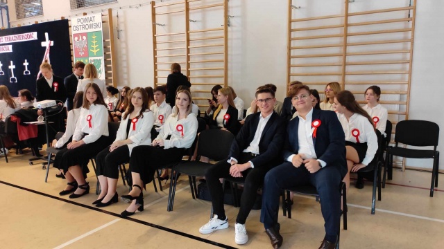 Młodzież przedstawiła montaż słowno-muzyczny o znaczeniu słów: ojczyzna, niepodległość, wolność.