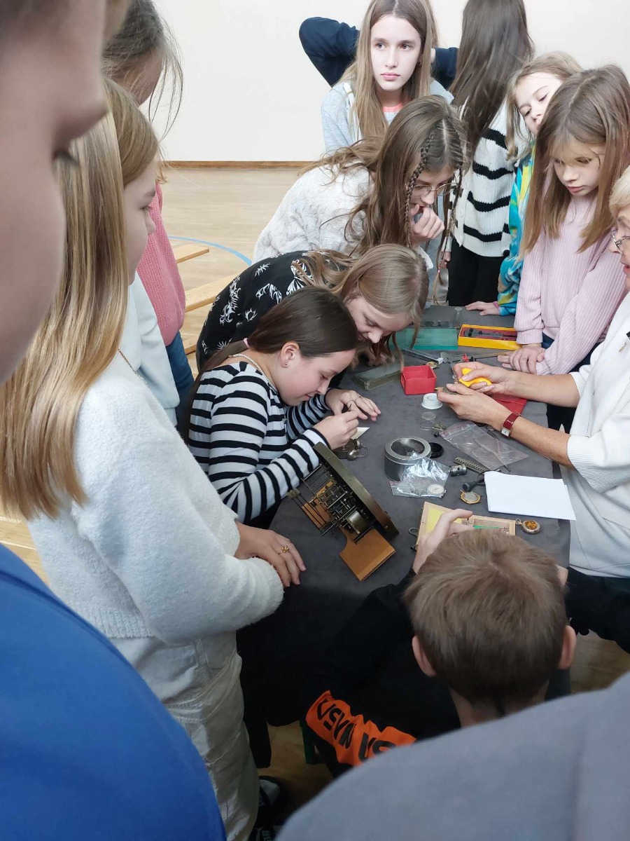 Spotkanie uczniów z zegarmistrzynią Dorotą Aleksandrowicz, z Pracowni Zegarmistrzowskiej i Metaloplastycznej w Ostrowi Mazowieckiej.