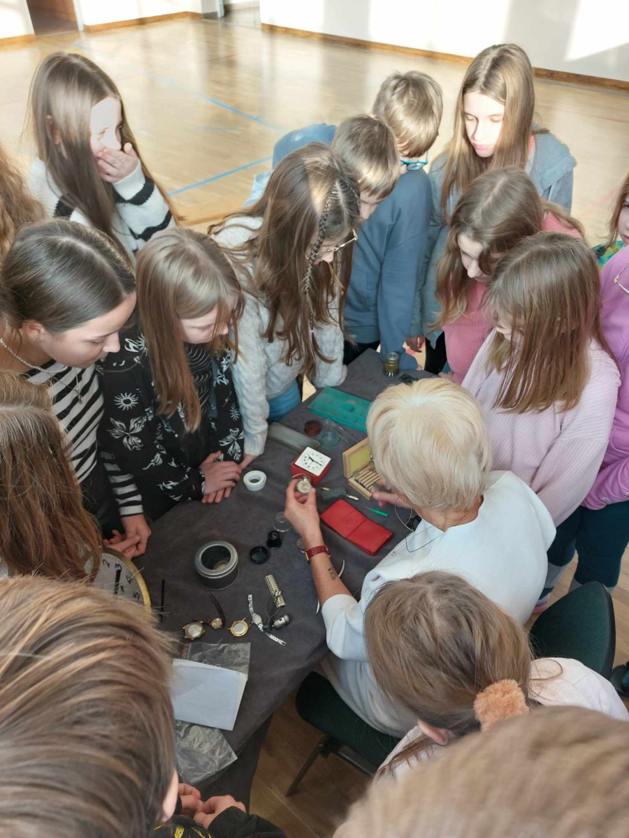 Spotkanie uczniów z zegarmistrzynią Dorotą Aleksandrowicz, z Pracowni Zegarmistrzowskiej i Metaloplastycznej w Ostrowi Mazowieckiej.