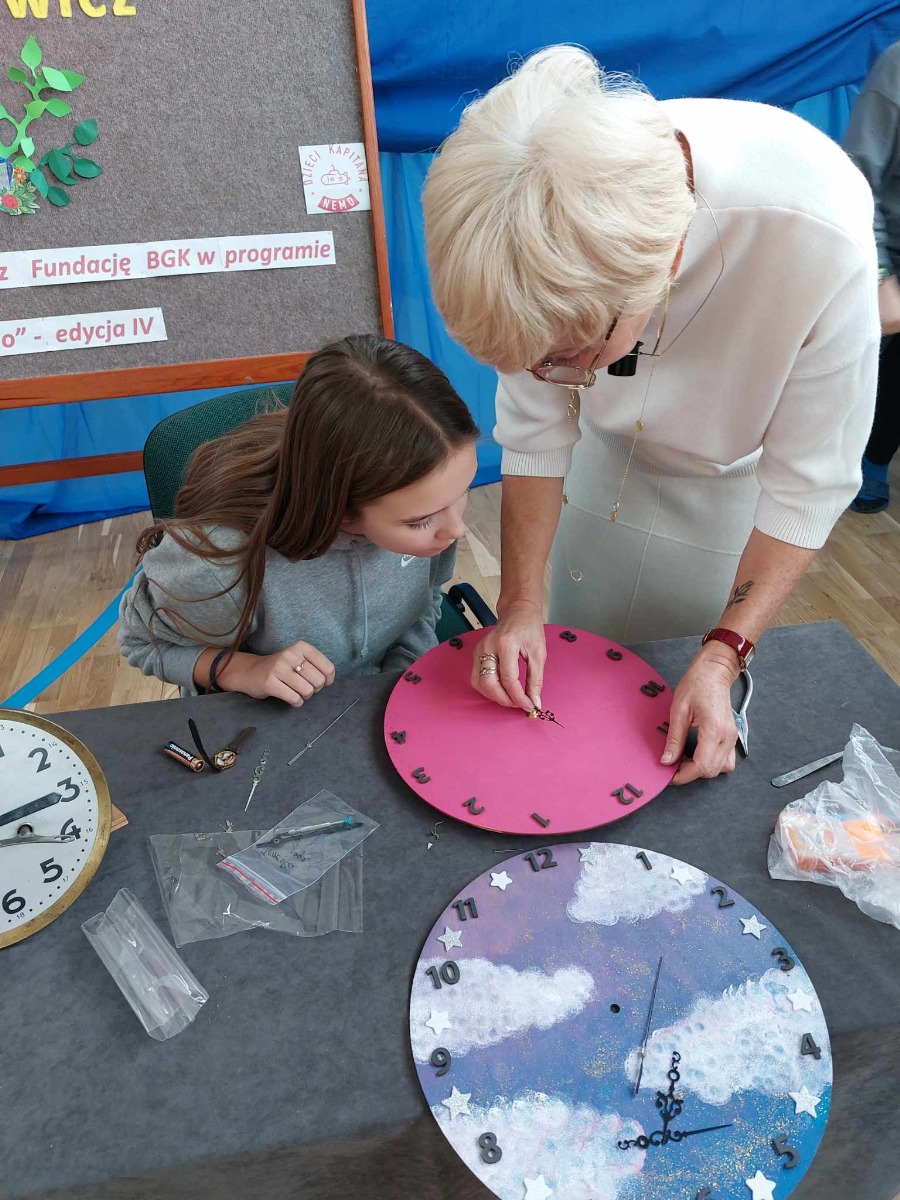 Spotkanie uczniów z zegarmistrzynią Dorotą Aleksandrowicz, z Pracowni Zegarmistrzowskiej i Metaloplastycznej w Ostrowi Mazowieckiej.
