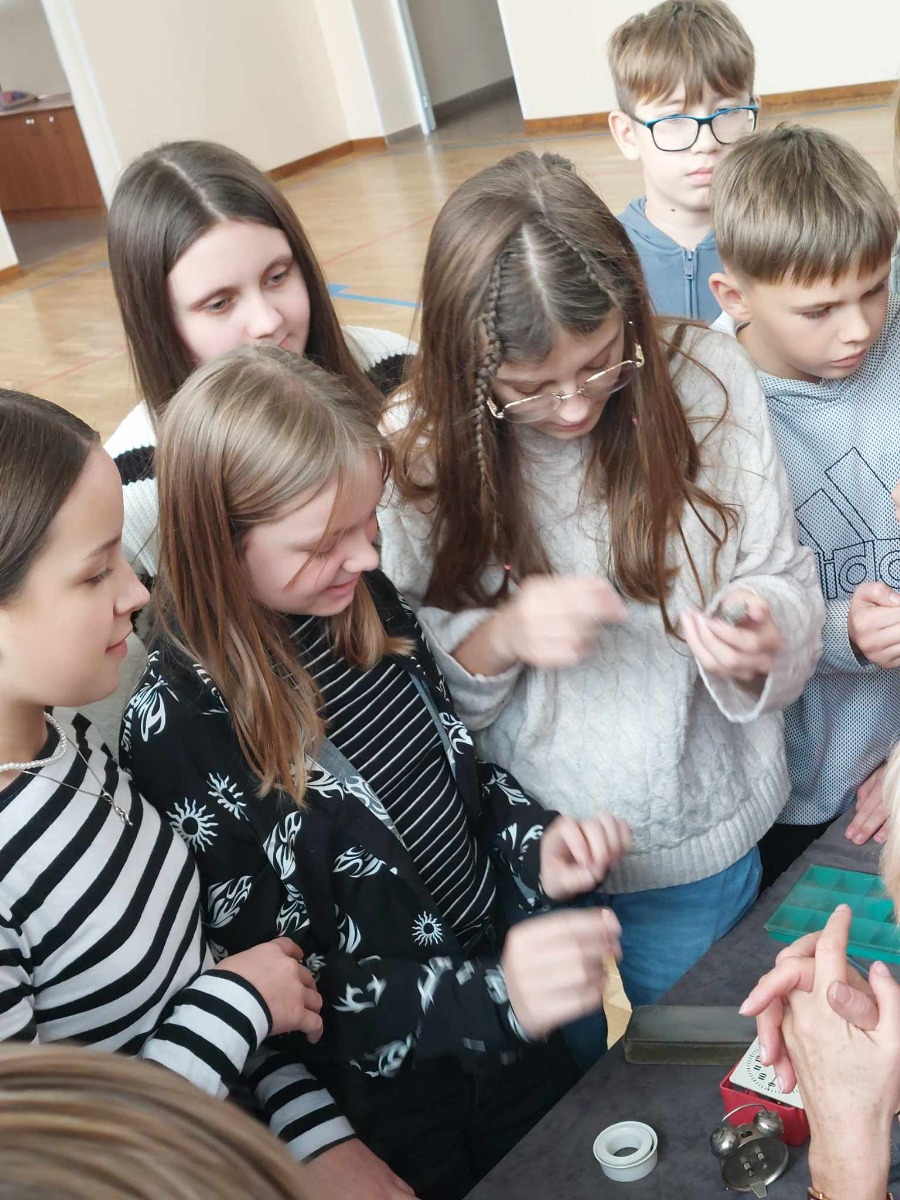 Spotkanie uczniów z zegarmistrzynią Dorotą Aleksandrowicz, z Pracowni Zegarmistrzowskiej i Metaloplastycznej w Ostrowi Mazowieckiej.