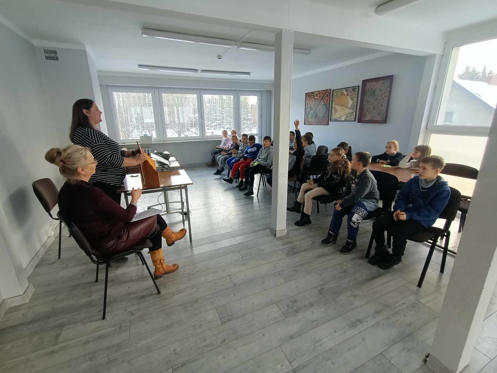Dzieci z Dybek odwiedziły Urząd Gminy i Bibliotekę Pedagogiczną (04.12.2023) - Zdjęcie 1/21