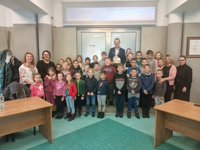 Dzieci z Dybek odwiedziły Urząd Gminy i Bibliotekę Pedagogiczną (04.12.2023) - Zdjęcie 21/21