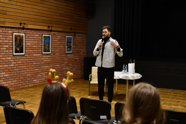 Spotkanie młodzieży z Jakubem Klymem - konferansjerem, prezenterem radiowym i tiktokerem.