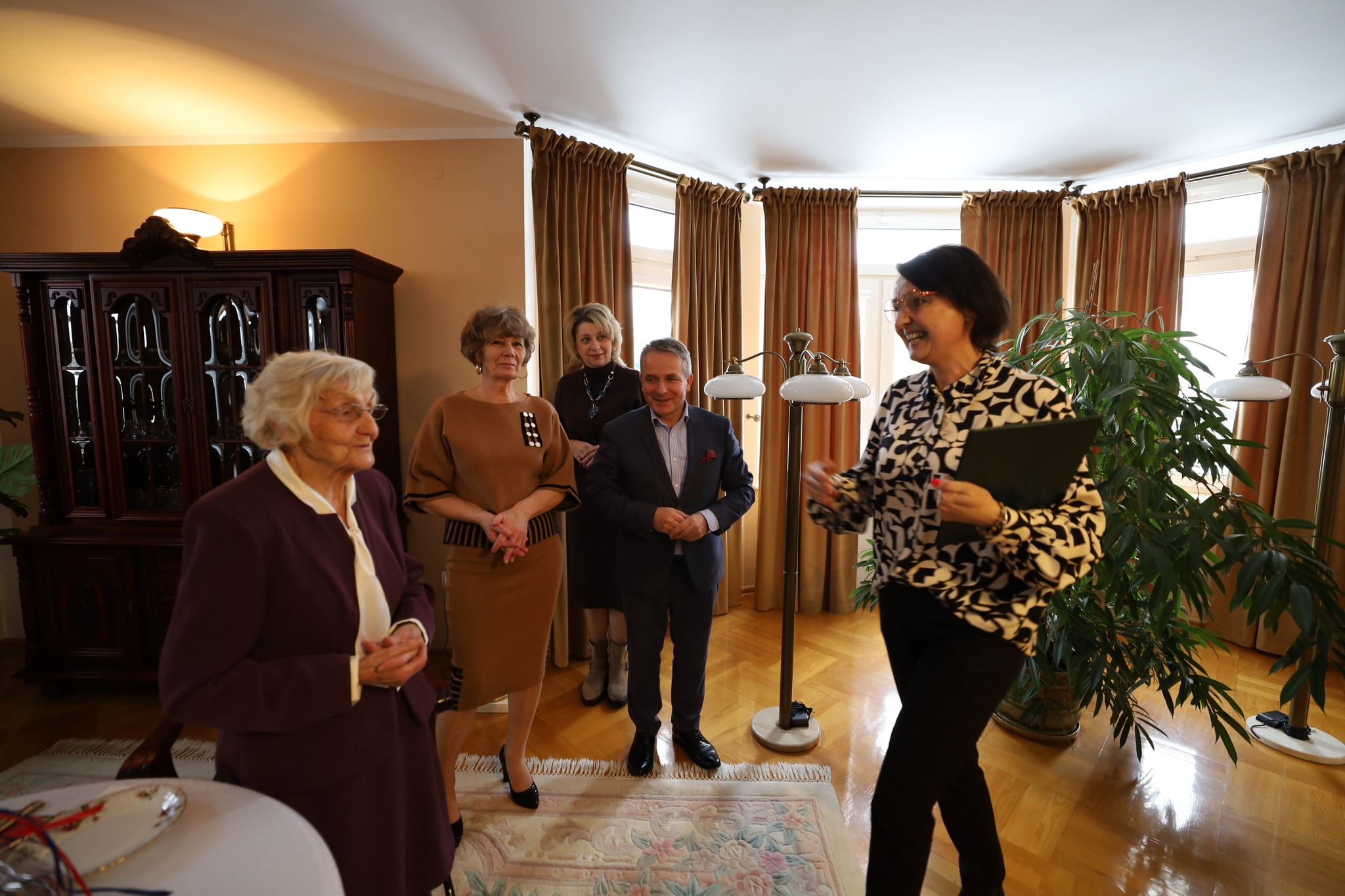 Odwiedzin jubilatki dokonali: burmistrz Jerzy Bauer, zastępczyni kierownika Urzędu Stanu Cywilnego Beata Rewkowska oraz przedstawicielki ZUS Inspektoratu w Ostrowi Mazowieckiej: Aneta Frąckiewicz i Agnieszka Kukawka.