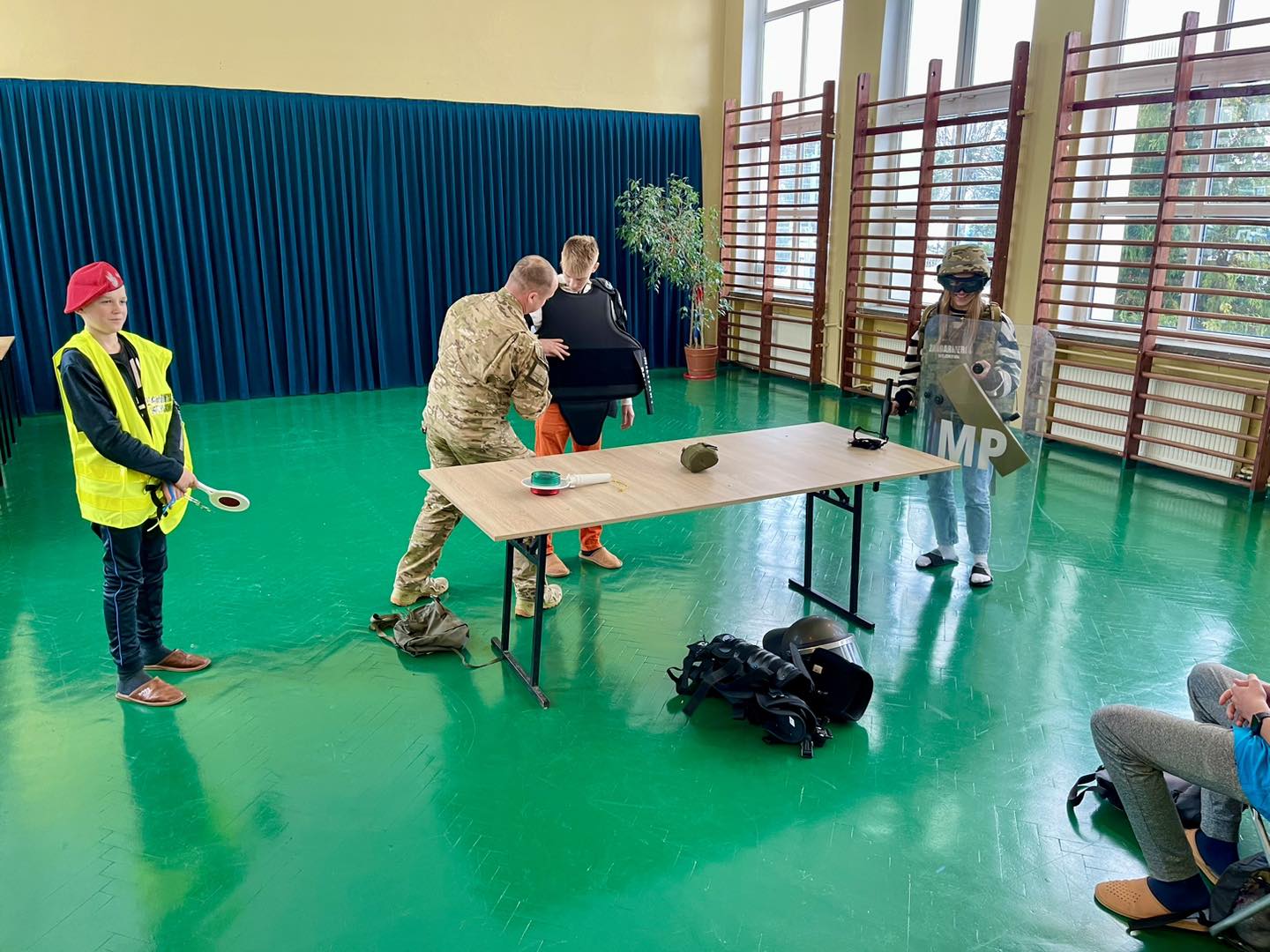 W trakcie spotkania uczniowie poznali specyfikę służby w Żandarmerii Wojskowej, ponadto zapoznali się ze sprzętem wojskowym.