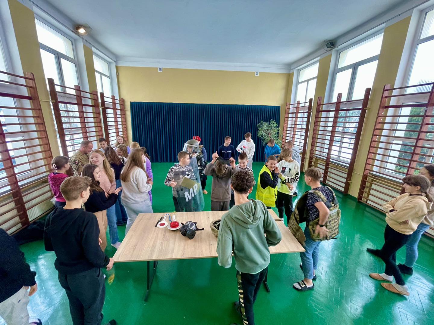W trakcie spotkania uczniowie poznali specyfikę służby w Żandarmerii Wojskowej, ponadto zapoznali się ze sprzętem wojskowym.