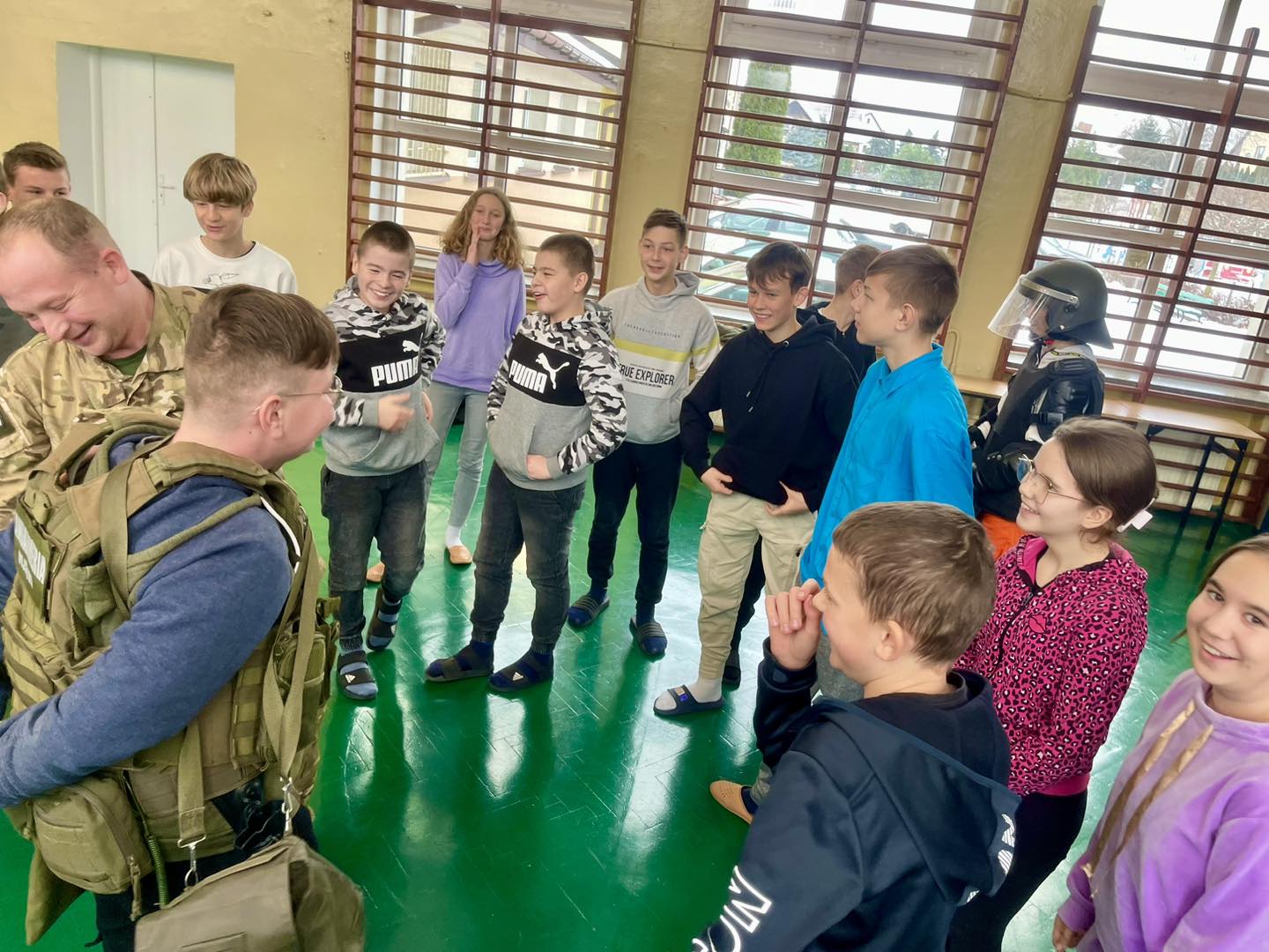 W trakcie spotkania uczniowie poznali specyfikę służby w Żandarmerii Wojskowej, ponadto zapoznali się ze sprzętem wojskowym.