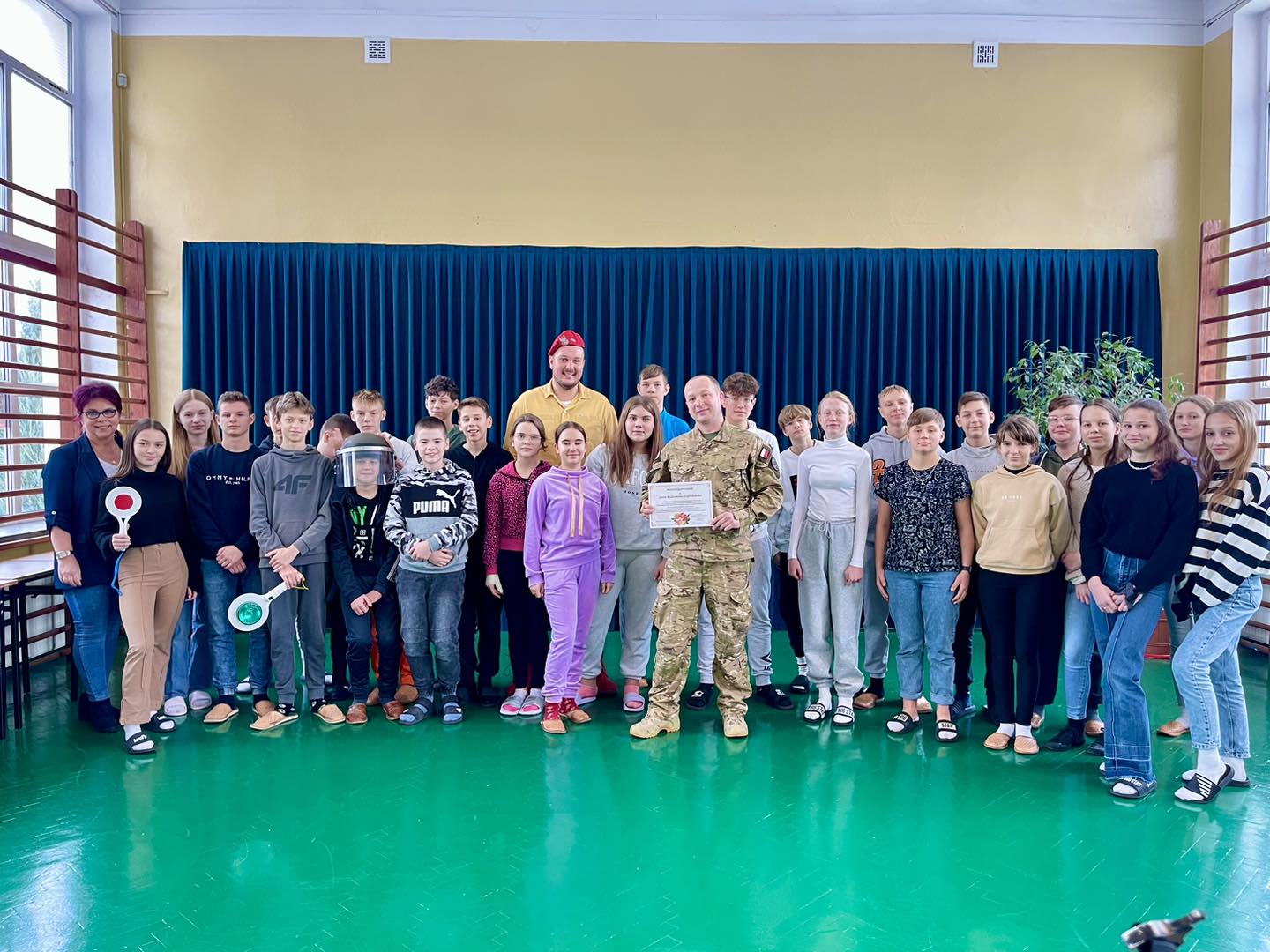 W trakcie spotkania uczniowie poznali specyfikę służby w Żandarmerii Wojskowej, ponadto zapoznali się ze sprzętem wojskowym.