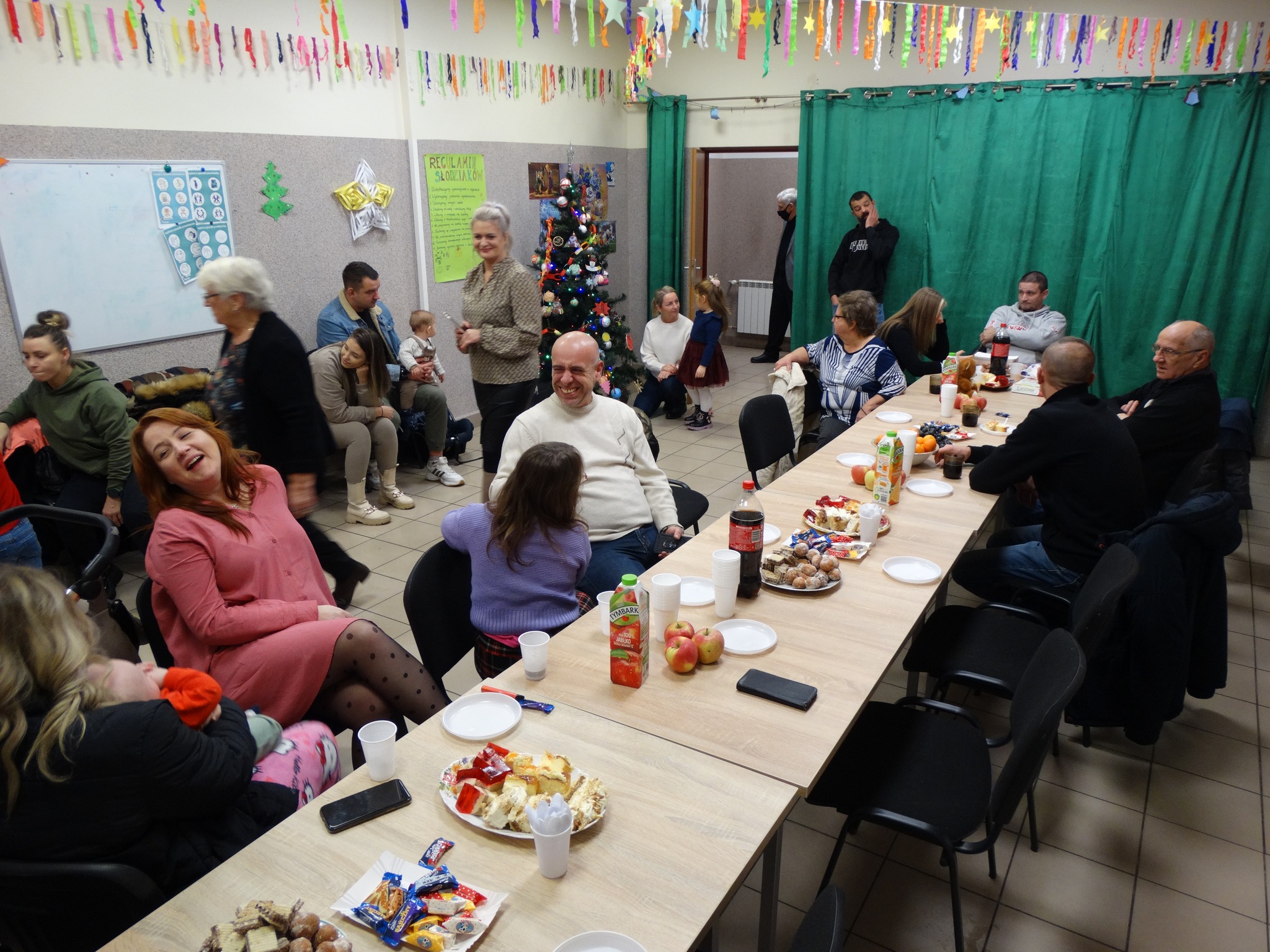 Po wspólnej zabawie na sali pojawił się długo wyczekiwany gość. Na widok Mikołaja pojawił się uśmiech na twarzach wszystkich uczestników spotkania.