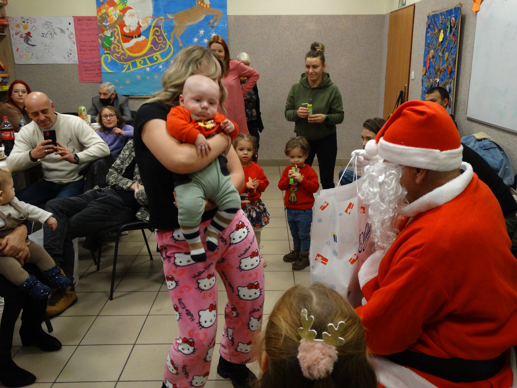 Po wspólnej zabawie na sali pojawił się długo wyczekiwany gość. Na widok Mikołaja pojawił się uśmiech na twarzach wszystkich uczestników spotkania.