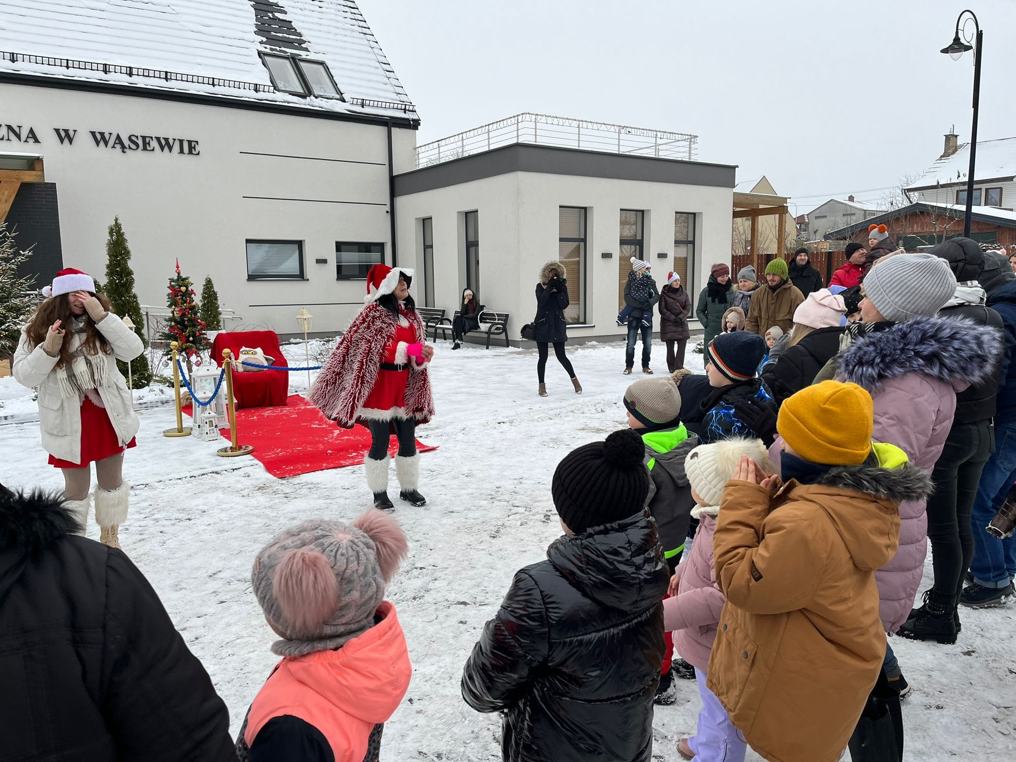 Na parkingu Urzędu Gminy Wąsewo podczas spotkania ze Świętym Mikołajem odbył się świąteczny jarmark. Mikołaj do Wąsewa przybył z dalekiej Laponii.