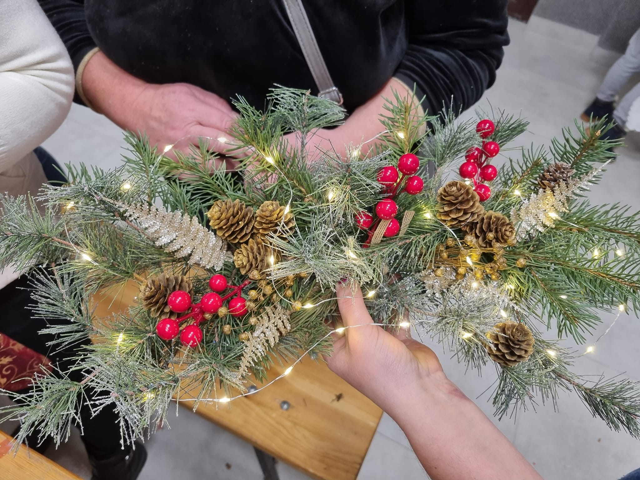 Podczas warsztatów przy dźwiękach świątecznych piosenek, powstały piękne bożonarodzeniowe wianki i inne dekoracje.