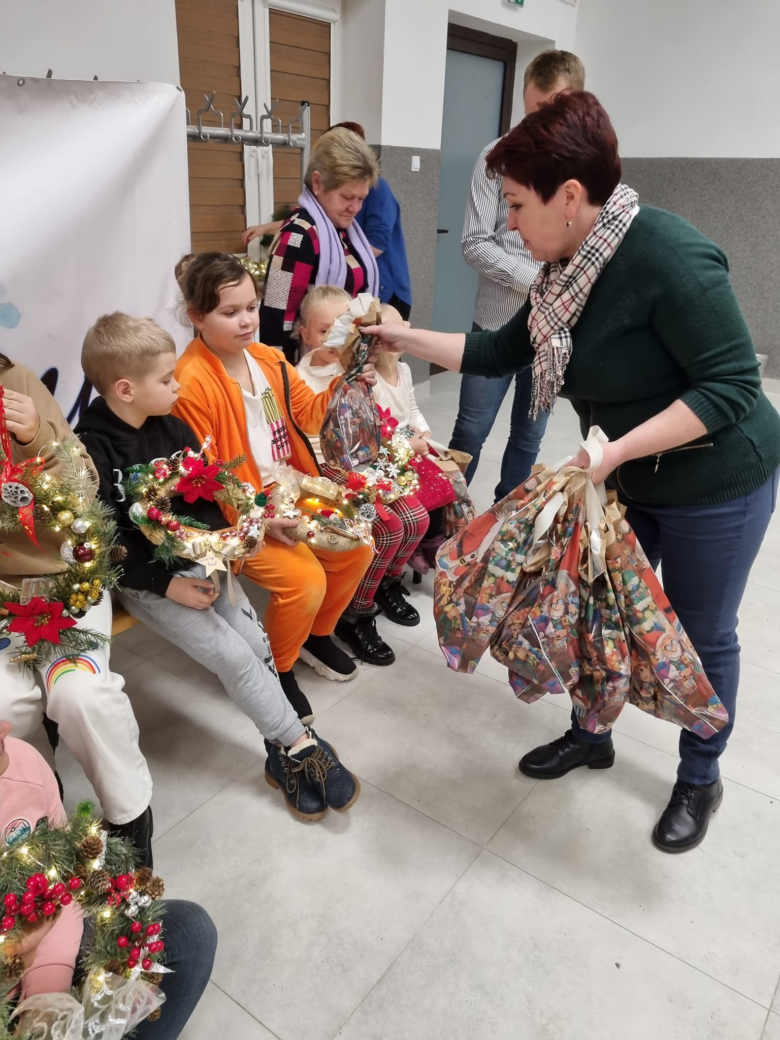 Podczas warsztatów przy dźwiękach świątecznych piosenek, powstały piękne bożonarodzeniowe wianki i inne dekoracje.