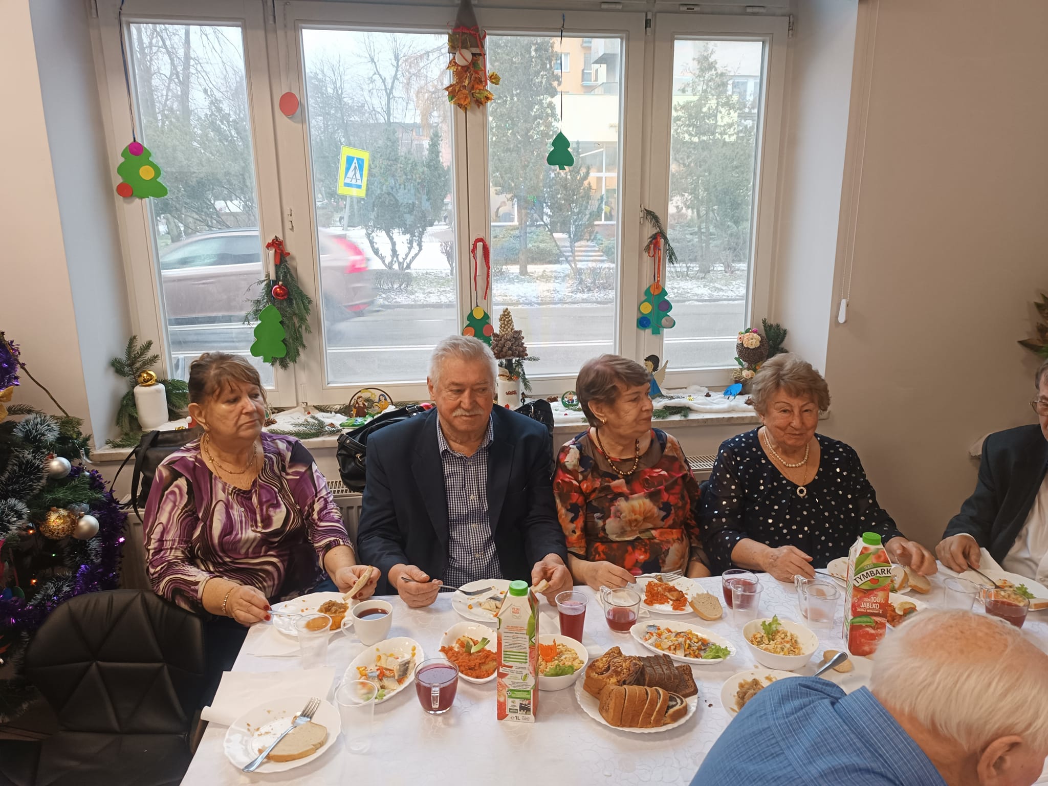 Kolacja wigilijna, dzielenie się opłatkiem, życzenia i wspólne kolędowanie uczestników spotkania.
