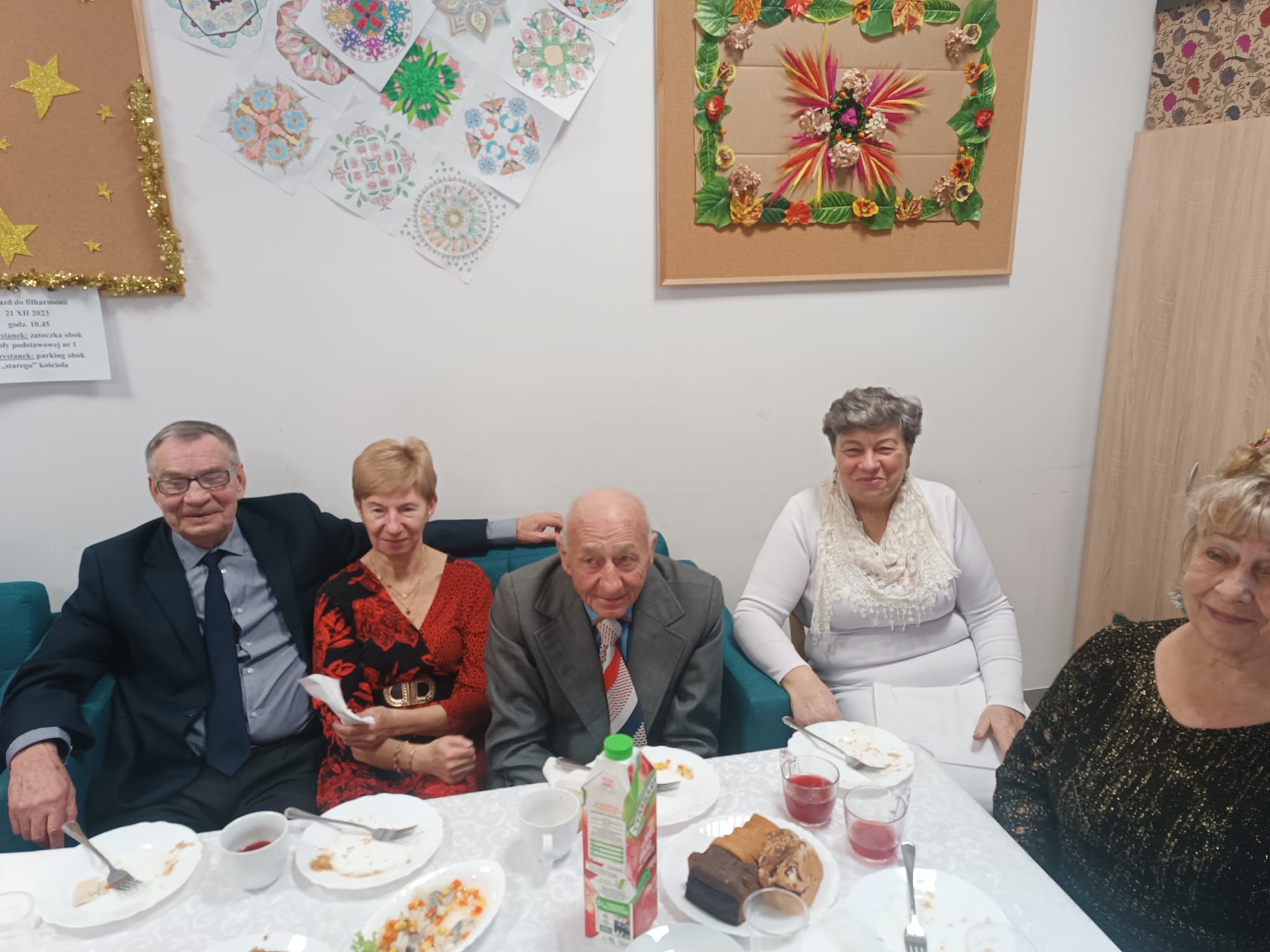 Kolacja wigilijna, dzielenie się opłatkiem, życzenia i wspólne kolędowanie uczestników spotkania.