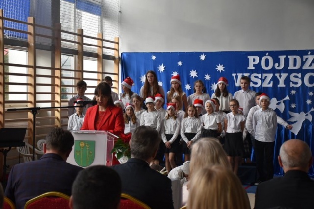 Uczniowie szkoły przygotowali przedstawienie jasełkowe. Chór szkolny zapewnił oprawę muzyczną. Wójt złożył życzenia.