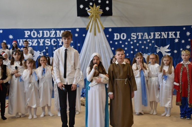 Uczniowie szkoły przygotowali przedstawienie jasełkowe. Chór szkolny zapewnił oprawę muzyczną. Wójt złożył życzenia.