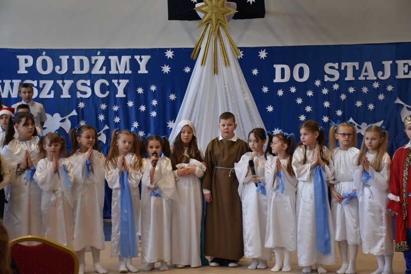 Uczniowie szkoły przygotowali przedstawienie jasełkowe. Chór szkolny zapewnił oprawę muzyczną. Wójt złożył życzenia.