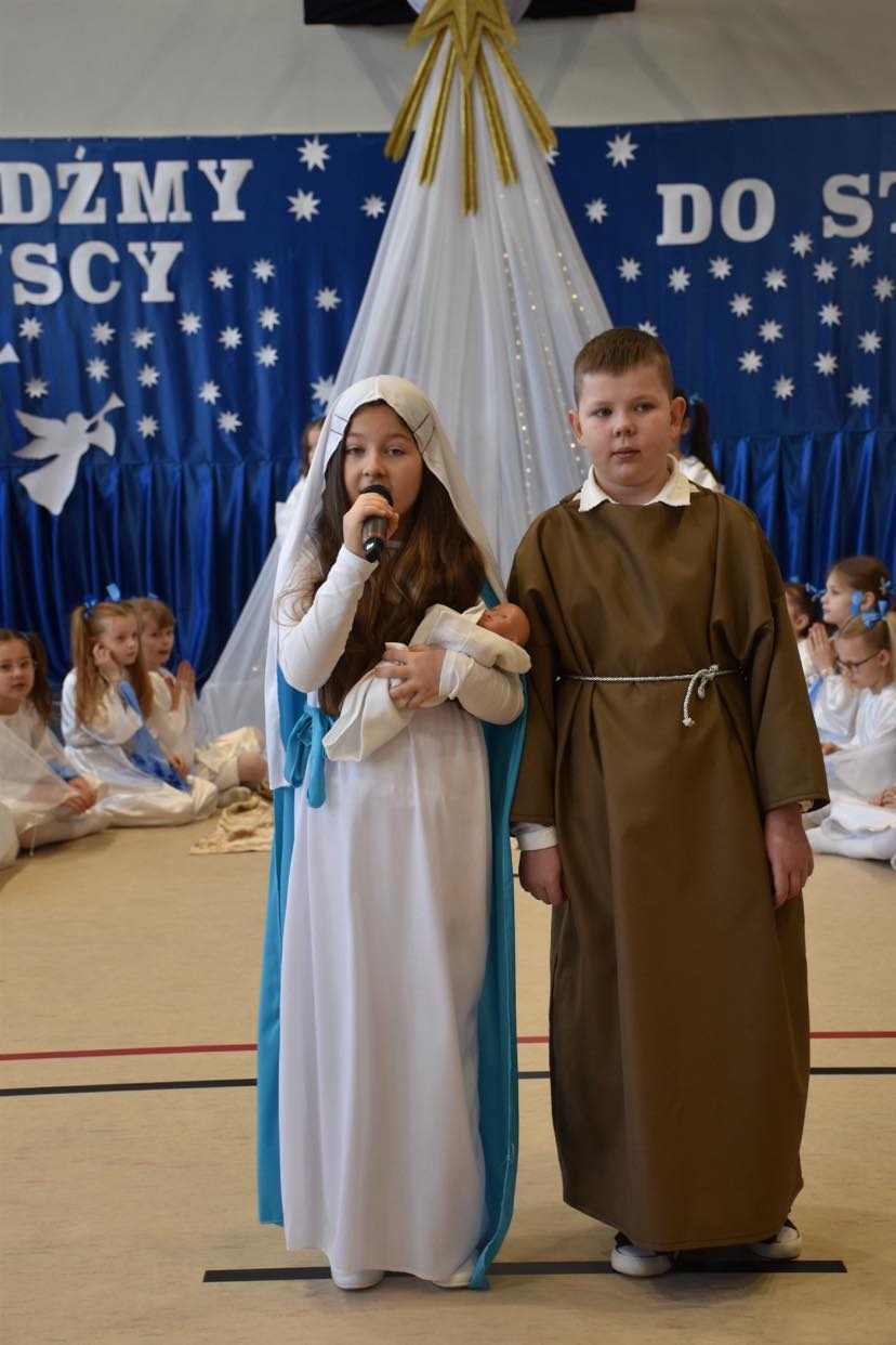 Uczniowie szkoły przygotowali przedstawienie jasełkowe. Chór szkolny zapewnił oprawę muzyczną. Wójt złożył życzenia.