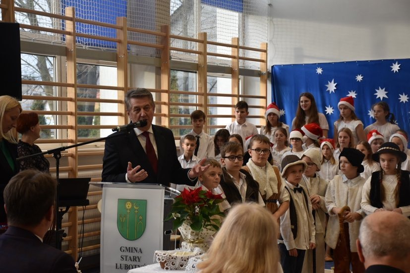 Uczniowie szkoły przygotowali przedstawienie jasełkowe. Chór szkolny zapewnił oprawę muzyczną. Wójt złożył życzenia.