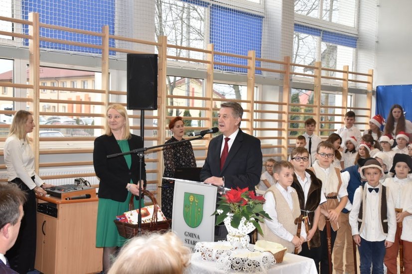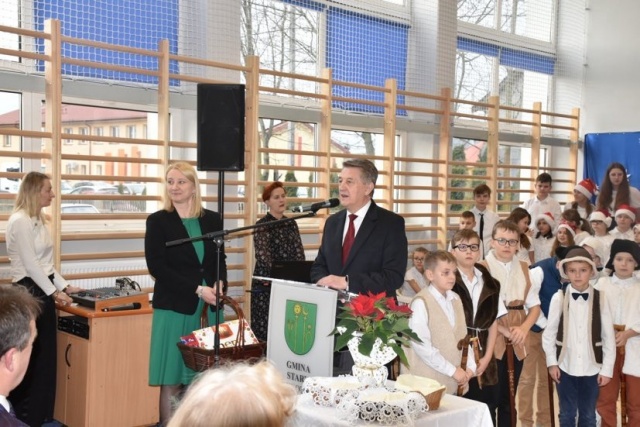 Uczniowie szkoły przygotowali przedstawienie jasełkowe. Chór szkolny zapewnił oprawę muzyczną. Wójt złożył życzenia.