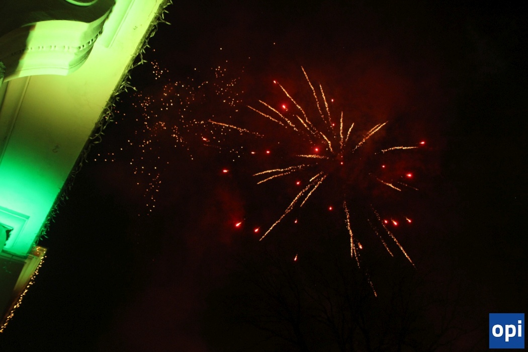 Mieszkanki i mieszkańcy Ostrowi tradycyjnie zakończyli rok 2023, jednocześnie rozpoczynając 2024, przed ratuszem miejskim.