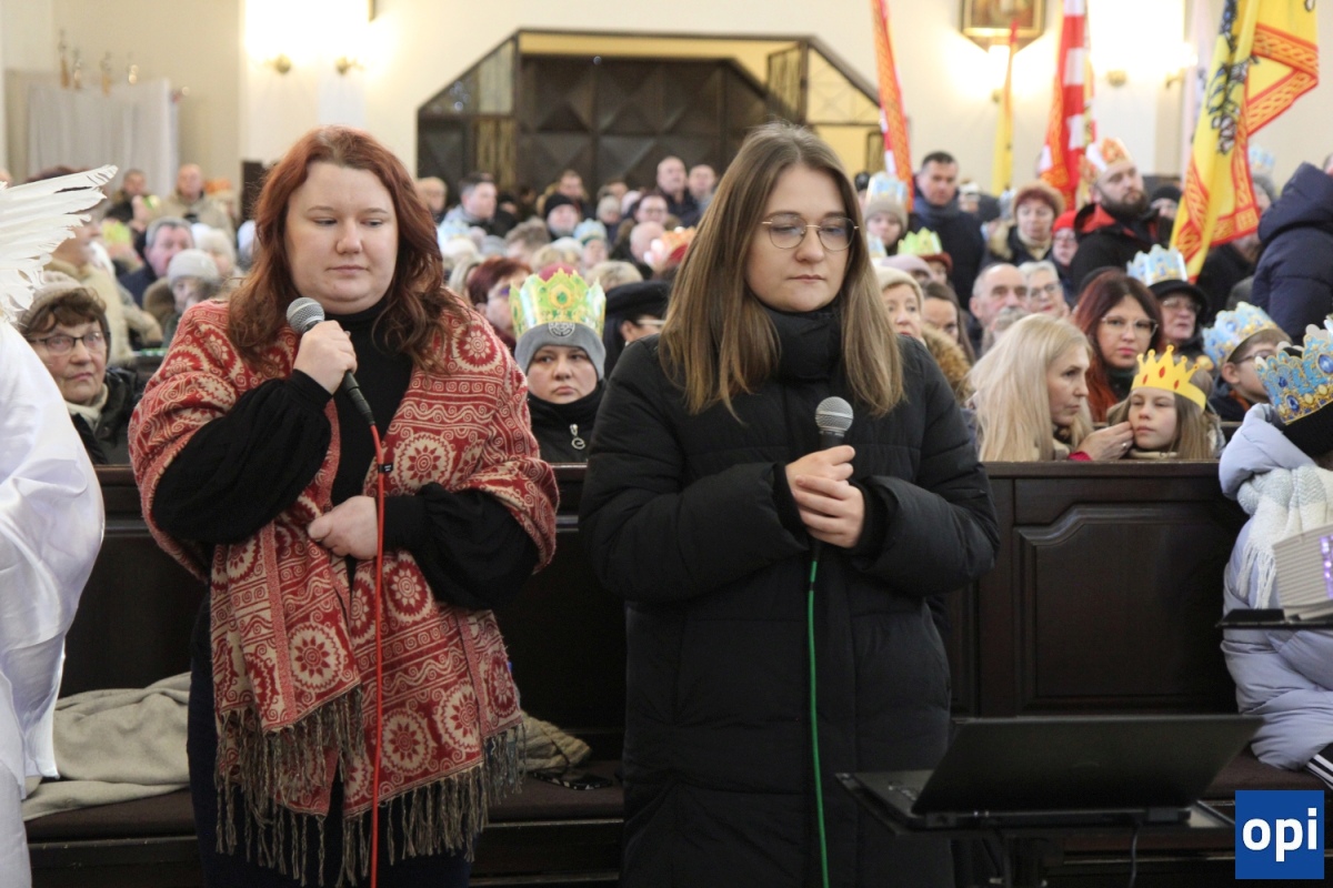 Baltazar, Kacper i Melchior prowadzeni przez gwiazdę betlejemską, a za nimi tłum mieszkańców Ostrowi Mazowieckiej, na trasie kościół pw. WNMP - kościół pw. Chrystusa Dobrego Pasterza.