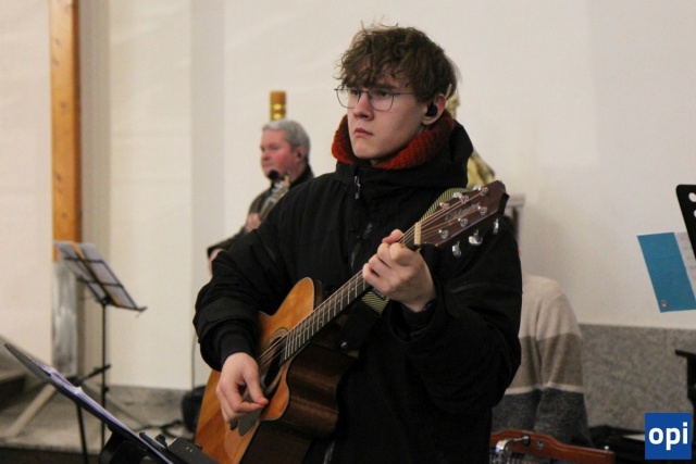 Baltazar, Kacper i Melchior prowadzeni przez gwiazdę betlejemską, a za nimi tłum mieszkańców Ostrowi Mazowieckiej, na trasie kościół pw. WNMP - kościół pw. Chrystusa Dobrego Pasterza.