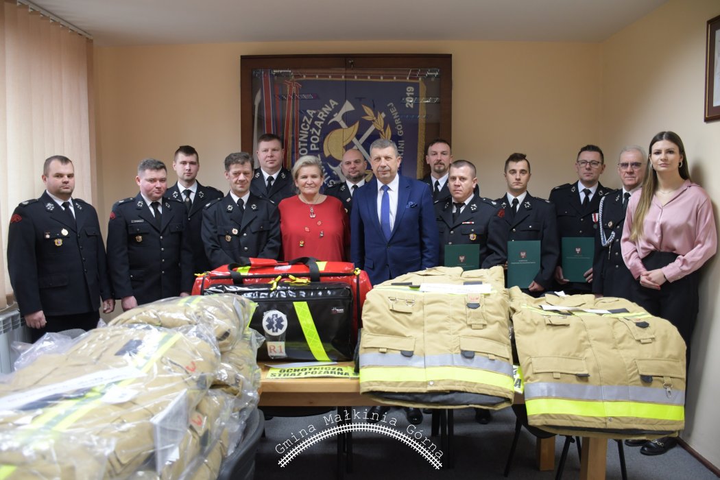 Uroczyste przekazanie strojów strażackich oraz torby ratownictwa medycznego PSP R1.